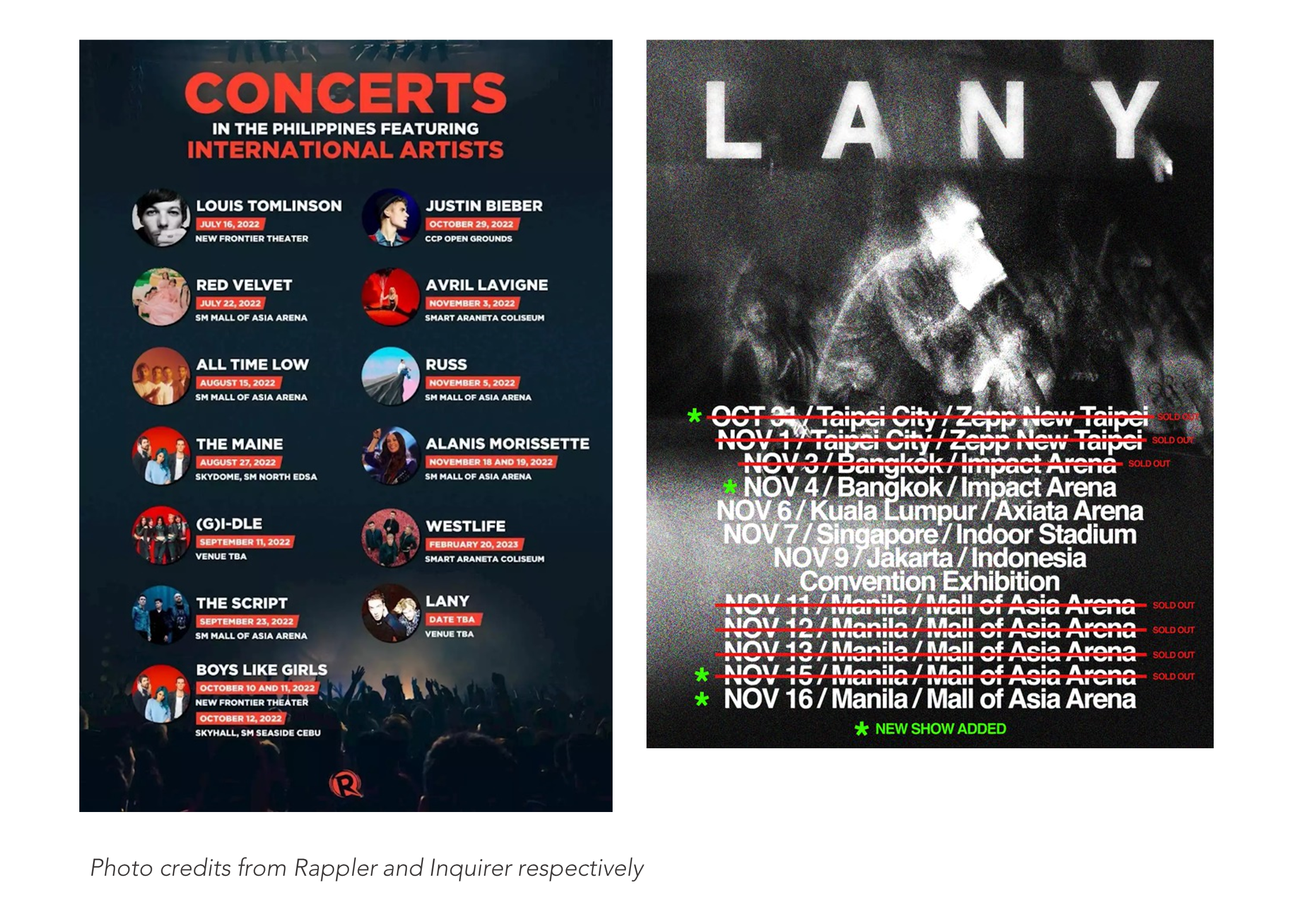 Concert Here. Concert There. Concert Everywhere. Social media was replete with announcements of upcoming shows, which excited many Filipino fans. The K-pop group Tomorrow X Together (TXT) announced their concert in Manila this October. It was followed shortly by Billie Eilish, who announced a gig in Manila in August. Other artists and bands such as Justin Bieber, LANY, and Westlife have also scheduled concerts. Interestingly, despite soaring prices and the expensive admission fees, a significant number of people are scrambling to buy tickets to them. There were fans who camped out of the ticketing booths and queued online to get tickets to Justin Bieber’s Justice Tour. LANY has even added shows to their Manila gig to accommodate as much fans as they could and will be performing for a total of 5 consecutive nights.